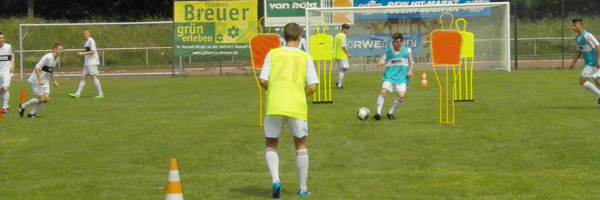 Der 2. Drehtag zur neuen DVD des Produktions-Duos Peter Hyballa/Peter Schreiner war ein voller Erfolg. Es stimmte einfach alles: Strahlender Sonnenschein, toller Rasenplatz, eine gut ausgebildete Trainingsgruppe (U17 FC Hennef 05 mit ihrem Trainer Martin Jedrusiak-Jung), ein gut aufgelegter Peter Hyballa und ein interessantes DVD-Konzept. Die Belastung war für alle Beteiligten extrem hoch: 4 Stunden harte Arbeit bei hohen Temperaturen. Spieler, Präsenter Peter Hyballa und Regisseur Peter Schreiner gingen an ihre Grenzen, denn von 10 – 14 Uhr gab es kaum Pausen, damit alle Übungs- und Spielformen aufgezeichnet werden konnten. Jetzt geht es an den Schnitt und die Endbearbeitung der DVD für Fußballtrainer. Fertigstellung: 20. Juli 2014