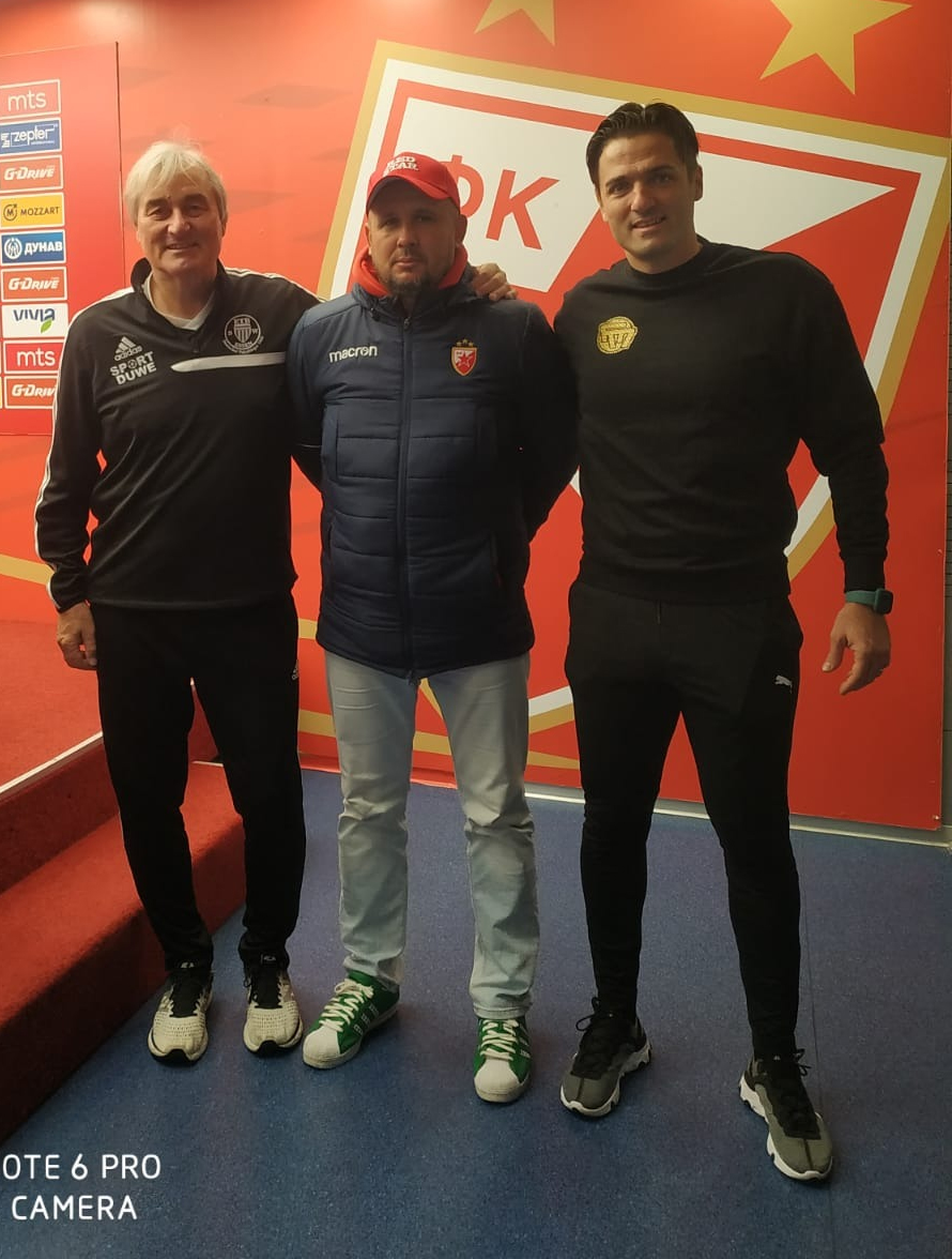 Dragan Mladenovic (Head Coach of Red Star Academy), Peter Schreiner, Nikola Jelic (Director of Red Star Academy), George Berneanou (Goalkeeper Coach).