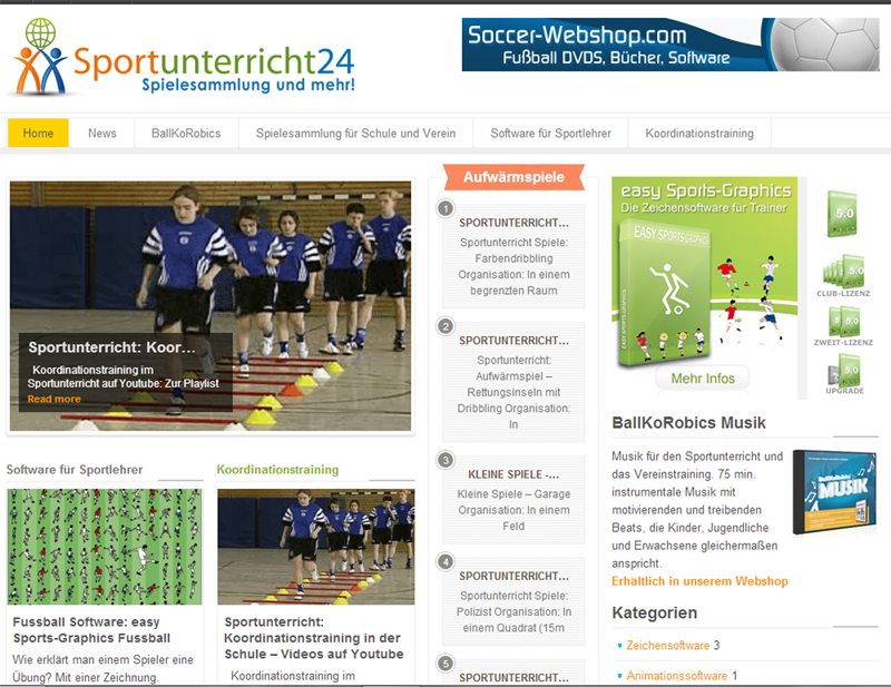 Die Seite sportunterricht24.de zeigt eine Sammlung von interessanten Spielen zum Aufwärmen, kleine Wettkämpfe und Technik-Lern-Spiele.