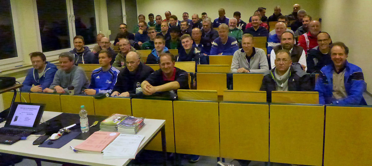 Die 45 teilnehmenden Trainer waren sich am Ende der Trainerfortbildung einig: “Wir haben viele Anregungen und Informationen zum Torschußtraining erhalten – eine sehr interessante Trainerfortbildung.”